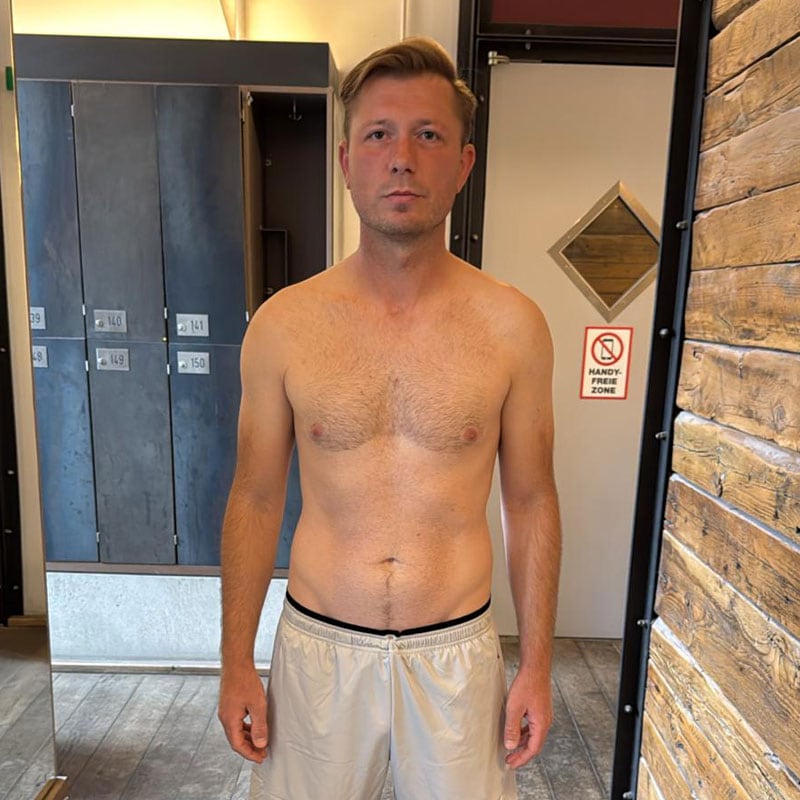 Stefan kam mit leichtem Übergewicht und einer insgesamt eingeschränkten körperlichen Verfassung ins Coaching. Seine Schlafqualität war deutlich reduziert, was sich spürbar auf Energie, Belastbarkeit und Alltag ausgewirkt hat. Auch die Blutwerte zeigten Defizite, die seine Vitalität und gesundheitliche Basis beeinflusst haben.
